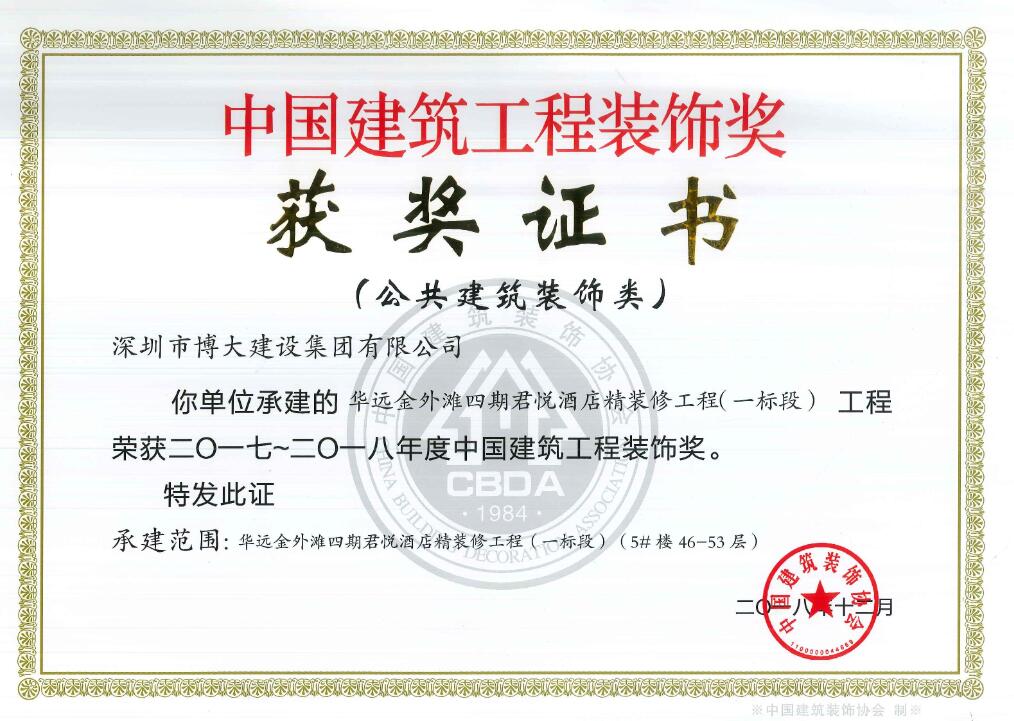 卓越品質(zhì)鑄經(jīng)典工程 博大又獲5項(xiàng)中國建筑工程裝飾獎
